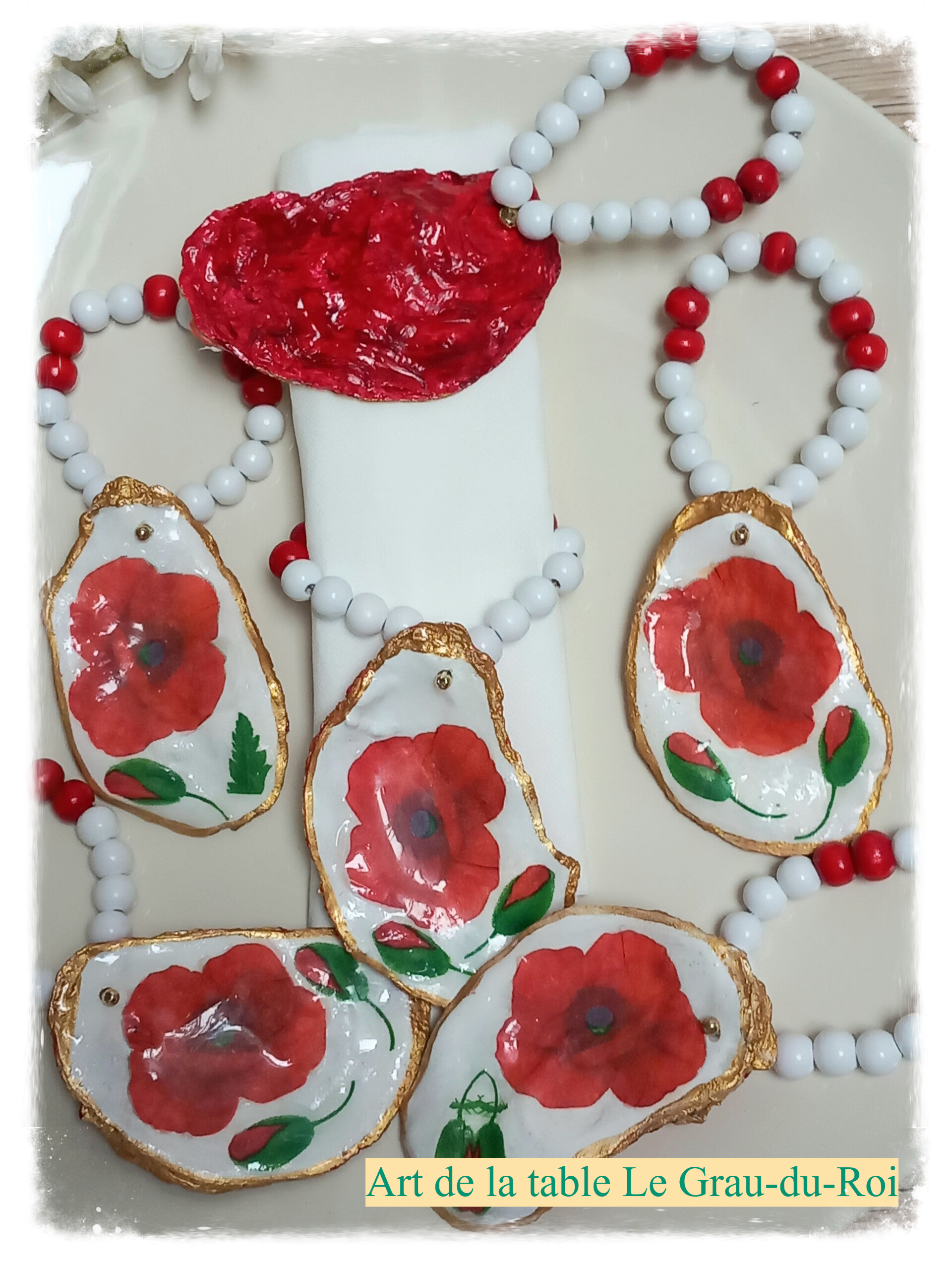 Lot de 6 ronds de serviette en coquilles Saint-Jacques, décoration florale pour égayer une table printanière. Fabrication artisanale sur le Grau-du-Roi