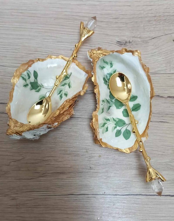 Set poivre et sel en coquillage d’huître décor feuilles délicates, idéal pour une table raffinée ou un cadeau unique. Une harmonie parfaite sur votre table.